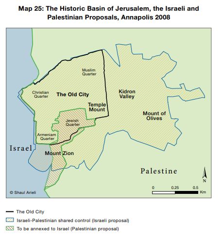 Map 25 The historic basin of Jerusalem the Israeli and Palestinian proposals Annapolis 2008